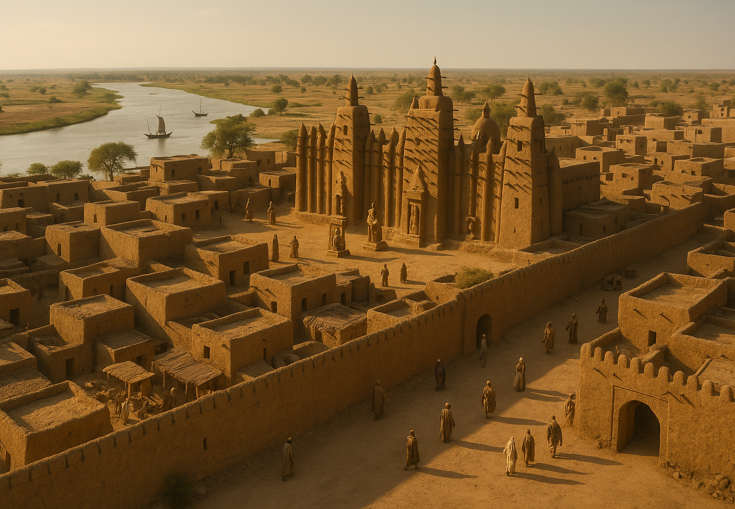 Built in the city's inner main circle, the Mecci Trade Center is a vital component of our town. Trade, since it is our biggest money creator/resource source, needs a center where all of it can happen, and this is our trade center. It is an open-air type building, beautifully constructed with beaten earth (banco), and wooden sticks. This is where ideas are shared between traders, and many traders open up markets inside the bustling circular building. Despite the building being neutral colored, lots of colorful decorations are created and placed on market stalls. The Mecci Trade Center is a must stop in town if you want to collect some souvenirs from our market workers, learn about our trade economy, or just enjoy the sights and sound of our diverse community.